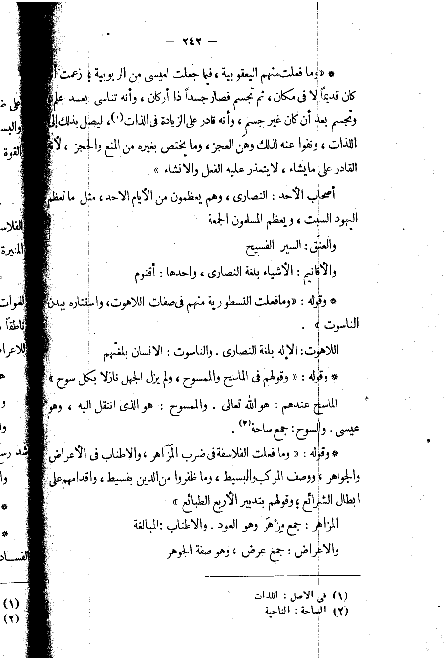 وقوله: وما فعلت النسطورية منهم في صفات اللاهوت، واستتاره ببدن الناسوت.