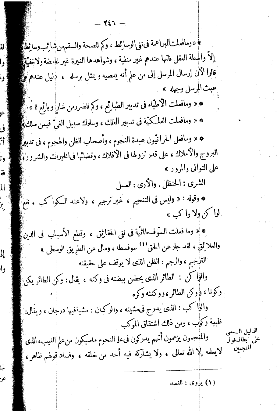 وما فعلت الأطباء في تدبير الطبائع، وكم للضرر من شارٍ وبائع؟ وما فعلت الفلكية في تدبير الفلك، وسلوك سبيل الغي فيمن سلك.
