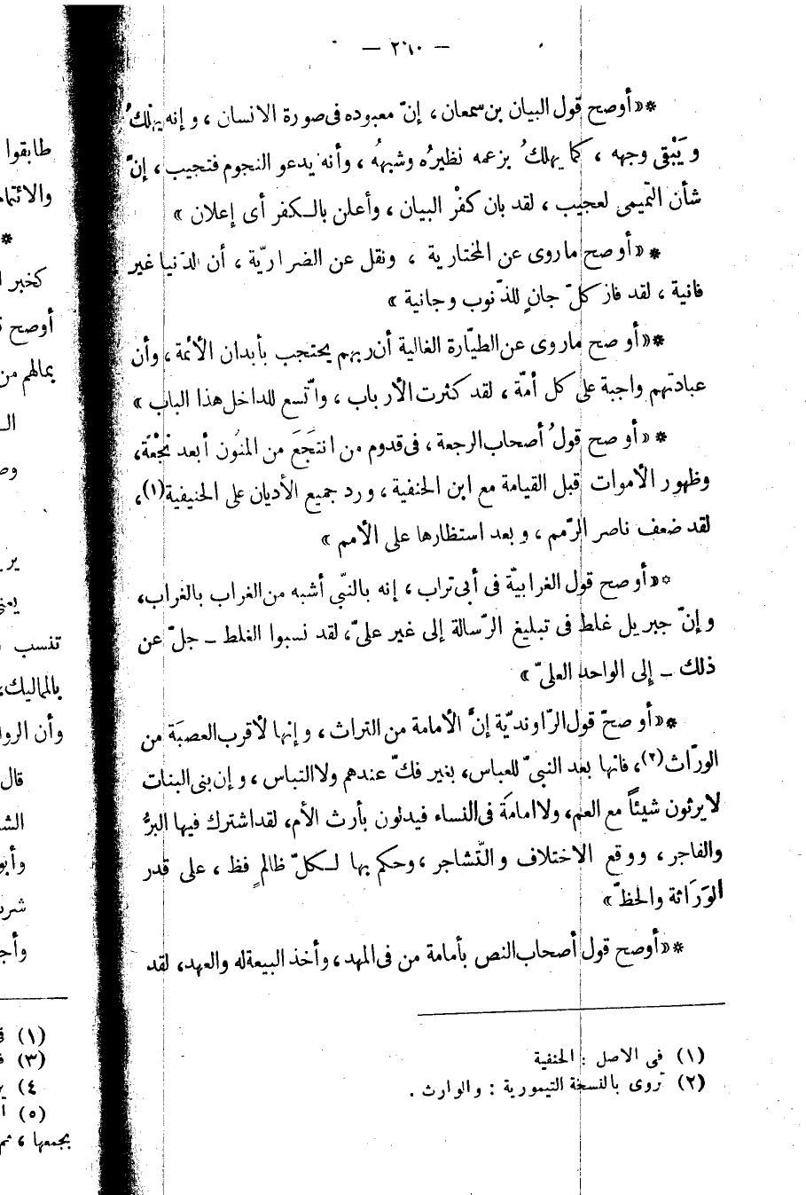 أو صح قول البيان بن سمعان، إن معبوده في صورة الإنسان، وإنه يهلك ويبقى وجهه، كما يهلك بزعمه نظيره وشبهه، وأنه يدعو النجوم فتجيب، إن شن التميمي لعجيب، لقد بان كفر البيان، وأعلن بالكفر أي إعلان.