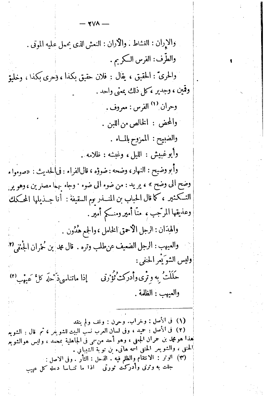 والعيهب: الرجل الضعيف عن طلب وتره. قال محمد بن حمران الجعفي، وليس الشويعر الحنفي: