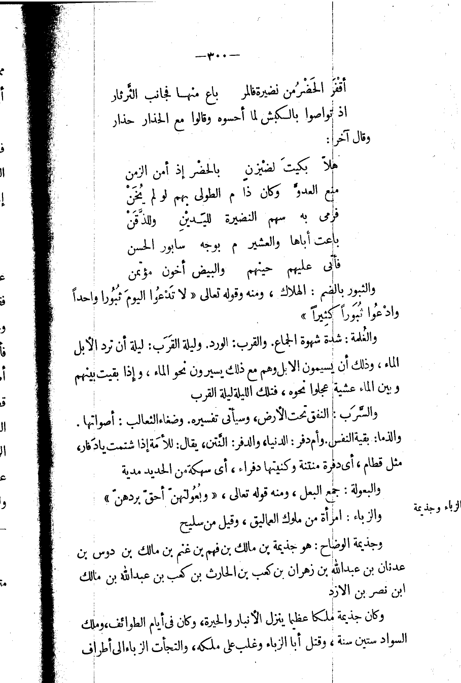 والسرب: النفق تحت الأرض، وسيأتي تفسيره، وضغاء الثعالب: أصواتها. والذما: بقية النفس. وأم دفر: الدنيا، والدفر: النتن، يقال: للأمة إذا شتمت يا دفار، مثل قطام، أي دفرة منتنة وكنيتها دفراء، أي سهكة من الحديد مدية.