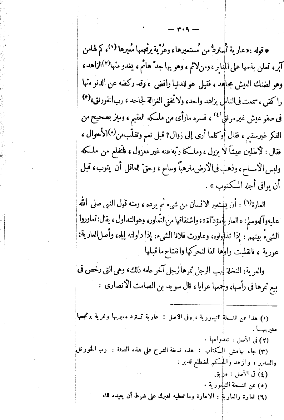 العارة: أن يستعير الإنسان من شيء ثم يرده، ومنه قول النبي صلى الله عليه وآله وسلم: (العارية مؤداة) ، واشتقاقها من التعاور، وهو التداول، يقال: تعاوروا الشيء بينهم: إذا تداولوه، وعورت فلاناً الشيء: إذا داولته إياه، وأصل العارية: عورية، فانقلبت واوها ألفاً لتحركها وانفتاح ما قبلها.
