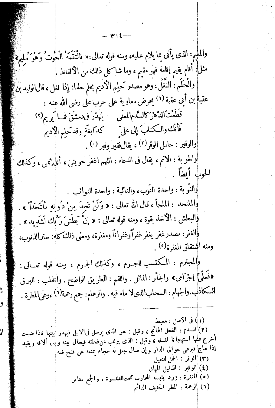 والمجترم: المكتسب للجرم، وكذل الجرم، ومنه قوله تعالى: (فعلي إجرامي) والجائر: المائل. واللقم: الطريق الواضح. والخلب: البرق الكاذب. والجهام: السحاب الذي لا ماء فيه. والرهام: جمع رهمة، وهي المطرة.