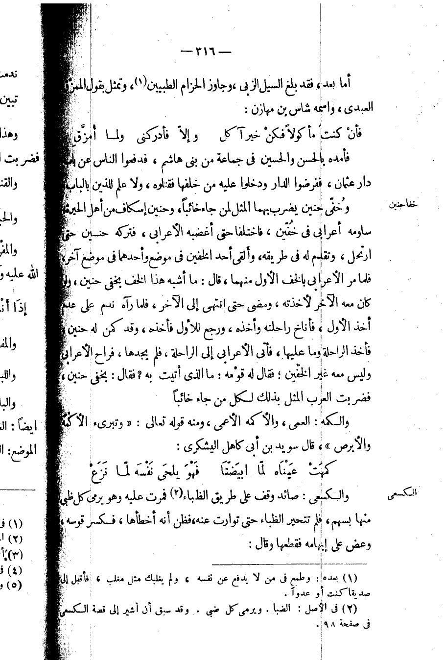 أما بعد، فقد بلغ السيل الزبي، وجاوز الحزام الطبيين، وتمثل بقول الممزق العبدي، واسمه شاس بن مهازن: