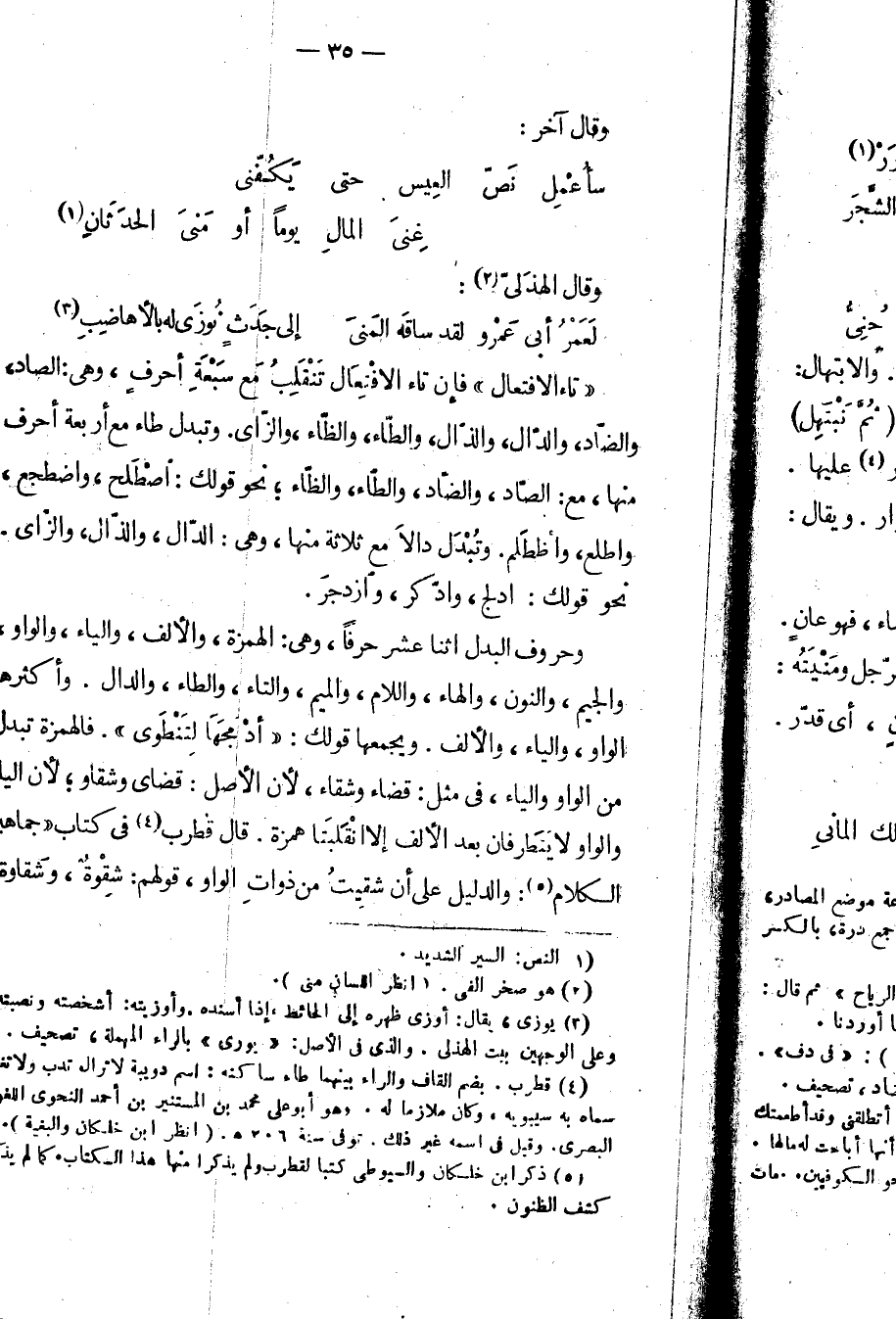 تاء الافتعال فإن تاء الافتعال تنقلب مع سبعة أحرف، وهي: الصاد، والضاد، والدال، والذال، والطاء، والظاء، والزاي. وتبدل طاء مع أربعة أحرف منها، مع: الصاد، والضاد، والطاء، والظاء؛ نحو قولك: اصطلح، واضطجع، واطلع، واظطلم. وتبدل دالاً مع ثلاثة منها، وهي: الدال والذال، والزاي. نحو قولك: ادلج، وادكر، وازدجر.