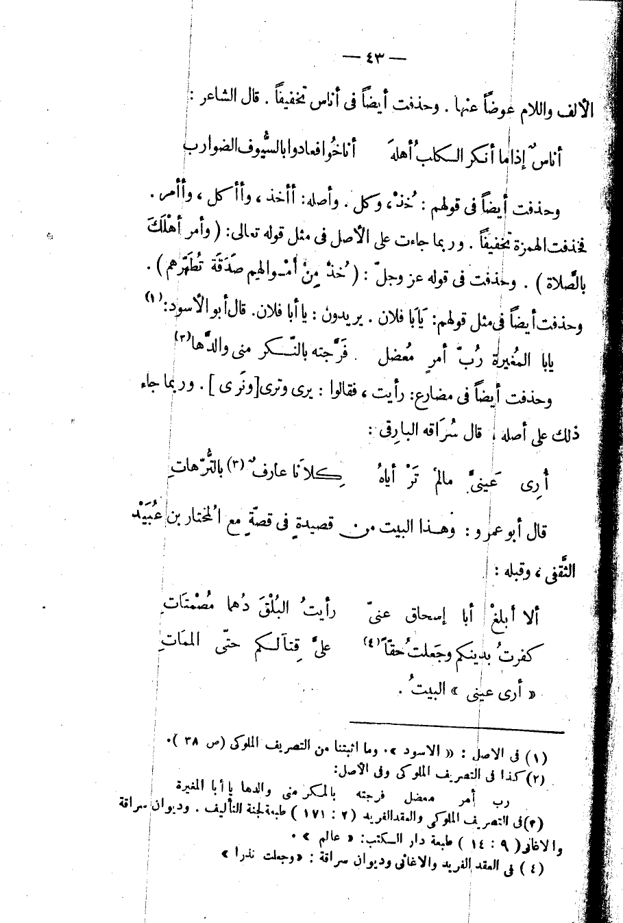 وحذفت أيضاً في مضارع: رأيت، فقالوا: يرى وترى ونرى. وربما جاء ذلك على أصله. قال سراقه البارقي: