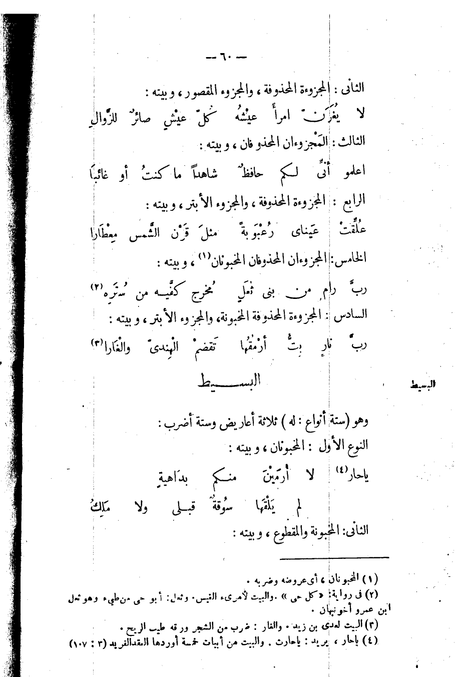 وهو ستة أنواع: له ثلاثة أعاريض وستة أضرب: النوع الأول: المخبوتان، وبيته: