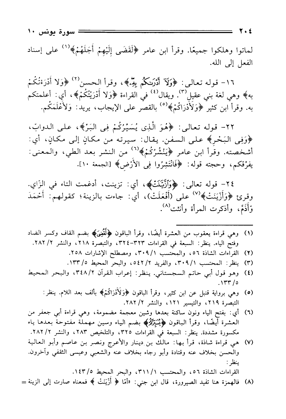24 - قوله تعالى: (وَازَيَّنَتْ)، أي: تزينت، أدغمت التاء في الزاي. وقرئ (وَأَزْيَنَتْ) على (أَفْعَلَتْ)، أي: جاءت بالزينة؛ كقولهم: أَحْمَدَ وّأَذَمَّ، وأذكرت المرأة وأنثت.