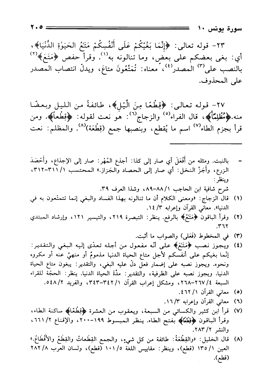 23 - قوله تعالى: (إِنَّمَا بَغْيُكُمْ عَلَى أَنْفُسِكُمْ مَتَاعُ الْحَيَاةِ الدُّنْيَا)، أي: بغى بعضكم على بعضٍ، وما تنالونه به. وقرأ حفص (مَتَاعَ) بالنصب على المصدر، معناه: تُمَتعُونَ متاعَ، ويدل انتصاب المصدر على المحذوف.