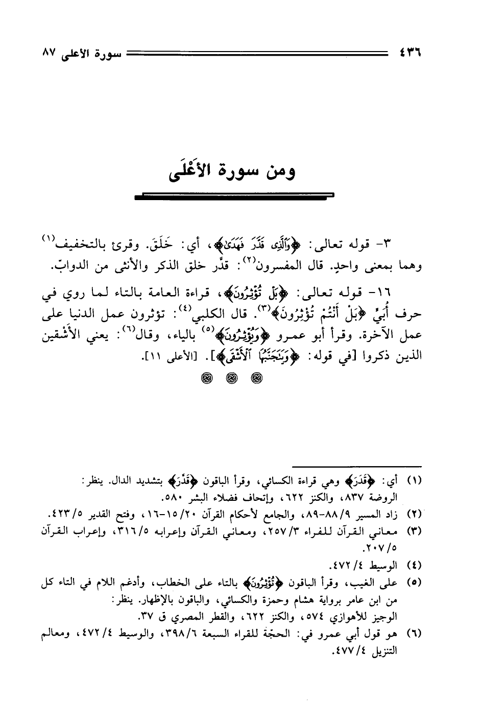 3 - قوله تعالى: (وَالَّذِي قَدَّرَ فَهَدَى)، أي: خَلَقَ. وقرئ بالتخفيف وهما بمعنى واحدٍ. قال المفسرون: قدَّر خلق الذكر والأنثى من الدوابّ.