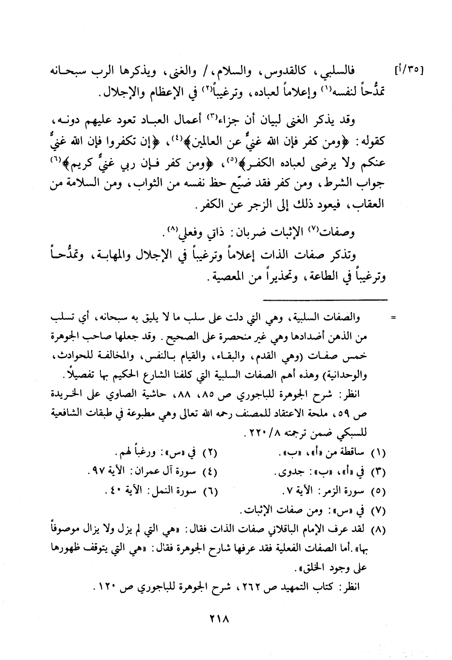 فالسلبي كالقدوس وَالسَّلَام والغني ويذكرها الرب سُبْحَانَهُ تمدحا لنَفسِهِ وإعلاما لِعِبَادِهِ وترغيبا فِي الإعظام والإجلال