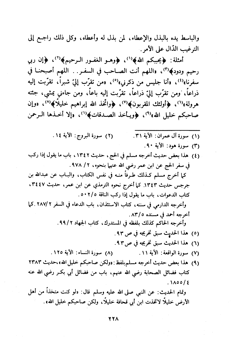 أَمْثِلَة {يحببكم الله} {وَهُوَ الغفور الرَّحِيم} {إِن رَبِّي رَحِيم ودود} اللَّهُمَّ أَنْت الصاحب فِي السّفر اللَّهُمَّ أَصْبَحْنَا فِي سفرنا أَنا جليس من ذَكرنِي وَمن تقرب إِلَيّ شبْرًا تقربت إِلَيْهِ ذِرَاعا وَمن تقرب إِلَيّ ذِرَاعا تقربت إِلَيْهِ باعا وَمن جَاءَنِي يمشي جِئْته هرولة {أُولَئِكَ المقربون} {وَاتخذ الله إِبْرَاهِيم خَلِيلًا} وَإِن صَاحبكُم خَلِيل الله {وَيَأْخُذ الصَّدقَات} إِلَّا أَخذهَا الرَّحْمَن
