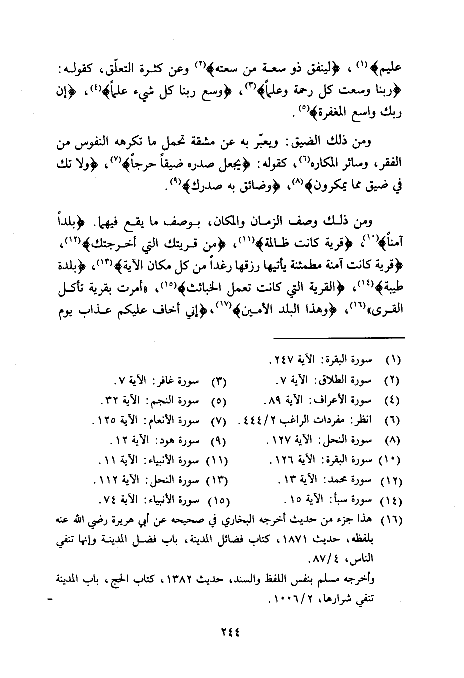 {لينفق ذُو سَعَة من سعته} وَعَن كَثْرَة التَّعَلُّق كَقَوْلِه {رَبنَا وسعت كل شَيْء رَحْمَة وعلما} {وسع رَبنَا كل شَيْء علما} {إِن رَبك وَاسع الْمَغْفِرَة}