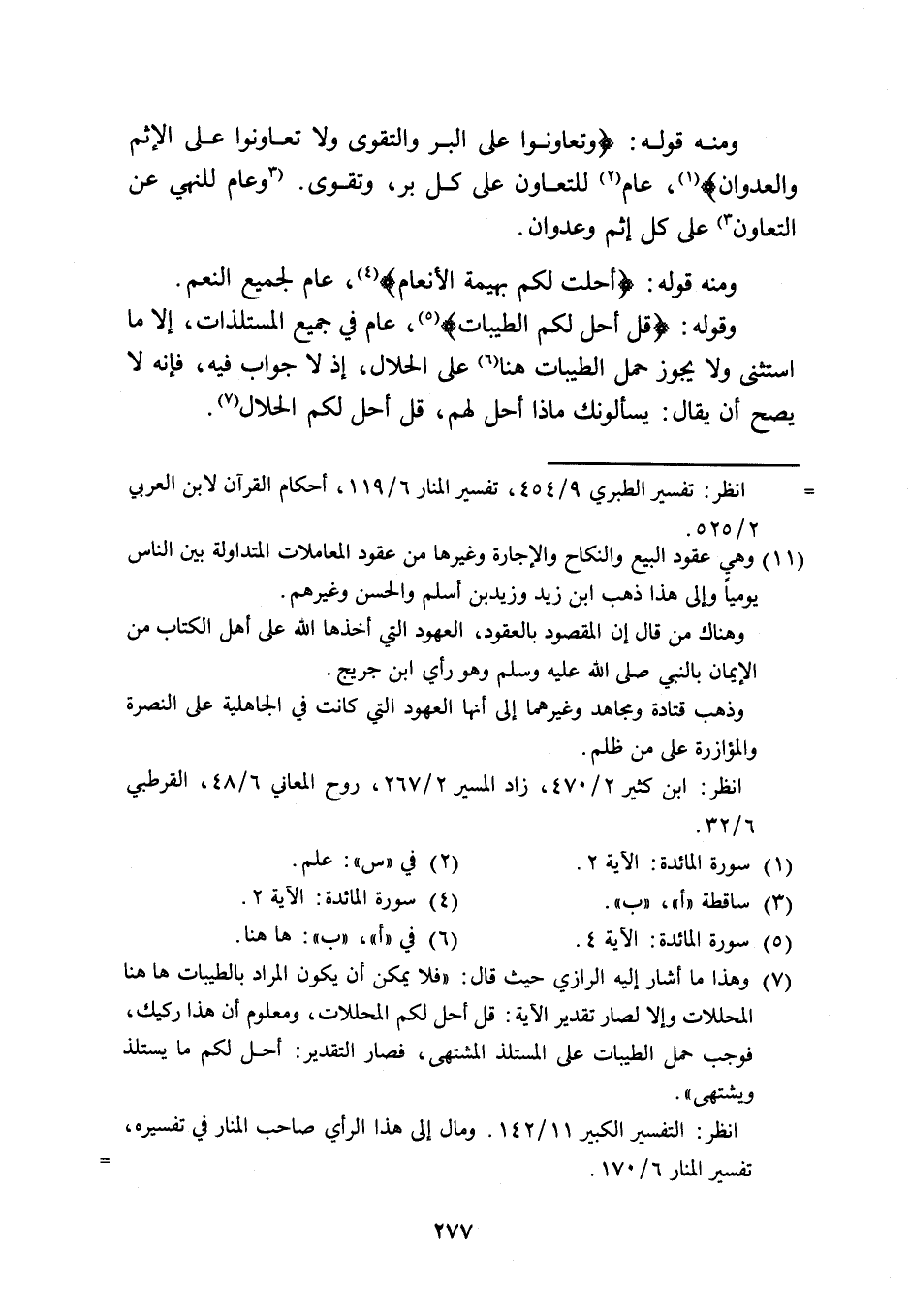 وَمِنْه قَوْله {وتعاونوا على الْبر وَالتَّقوى وَلَا تعاونوا على الْإِثْم والعدوان} عَام للتعاون على كل بر وتقوى وعام للنَّهْي عَن التعاون على كل إِثْم وعدوان