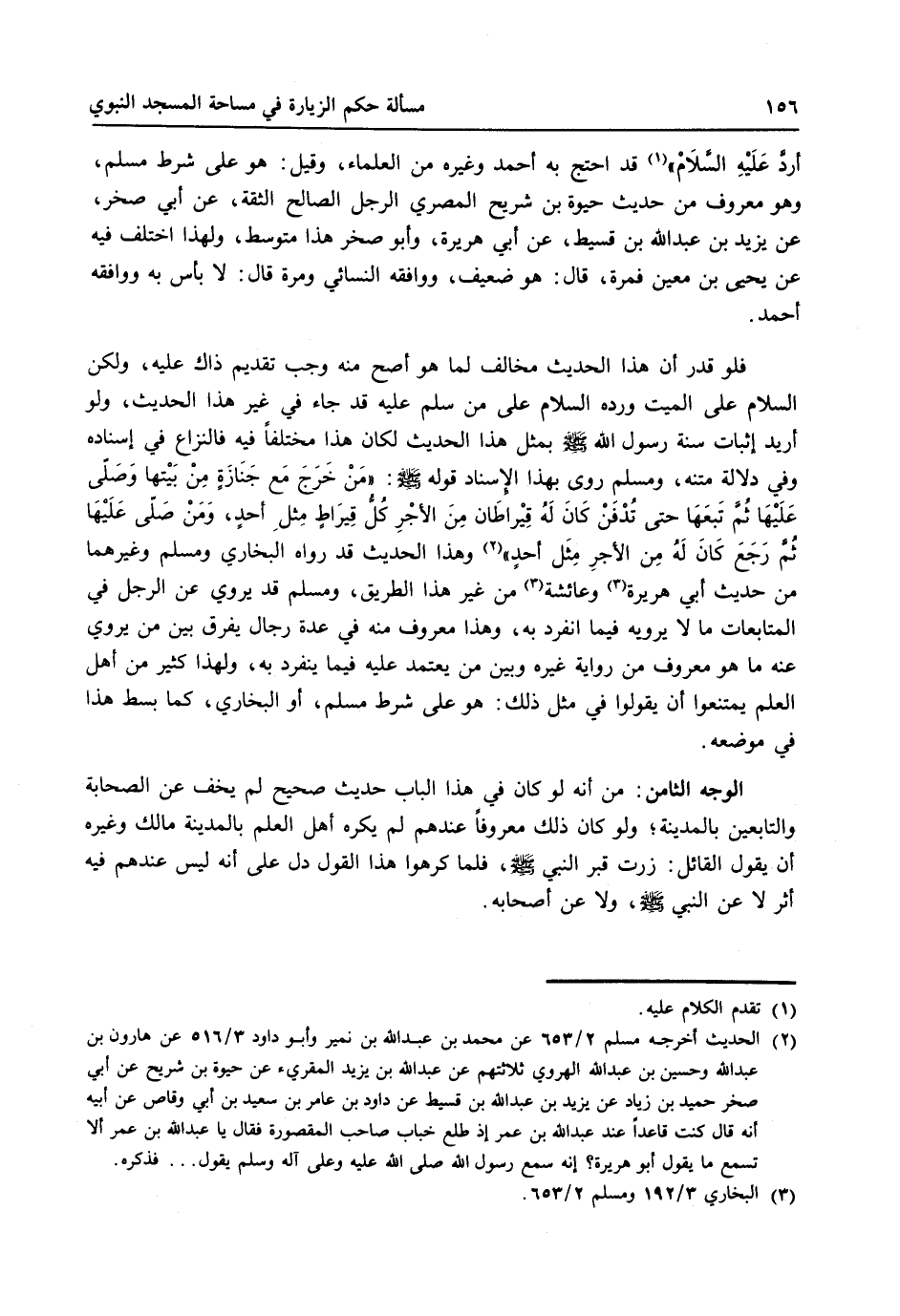 فلو قدر أن هذا الحديث مخالف لما هو أصح منه وجب تقديم ذاك عليه، ولكن السلام على الميت ورده السلام على من سلم عليه قد جاء في غير هذا الحديث، ولو أريد إثبات سنة رسول الله صلى الله عليه وسلم بمثل هذا الحديث لكان هذا مختلفاً فيه فالنزاع في إسناده وفي دلالة متنه، ومسلم روى بهذا الإسناد قوله صلى الله عليه وسلم: ((من خرج مع جنازة من بيتها وصلى عليها ثم تتبعها حتى تدفن كان له قيراطان من الأجر كل قيراط مثل أحد،ومن صلى عليها ثم رجع كان له من الأجر مثل أحد)) (2) وهذا الحديث قد رواه البخاري ومسلم وغيرهما من حديث أبي هريرة (3) وعائشة (4) من غير هذا الطريق، ومسلم قد يروي عن الرجل المتابعات ما لا يرويه فيما انفرد به، وهذا معروف منه في عدة رجال يفرق بين من يروي عنه ما هو معروف من رواية غيره وبين من يعتمد عليه فيما ينفرد به، ولهذا كثير من أهل العلم يمتنعوا أن يقولوا في مثل ذلك: هو على شرط مسلم، أو البخاري، كما بسط هذا في موضعه.