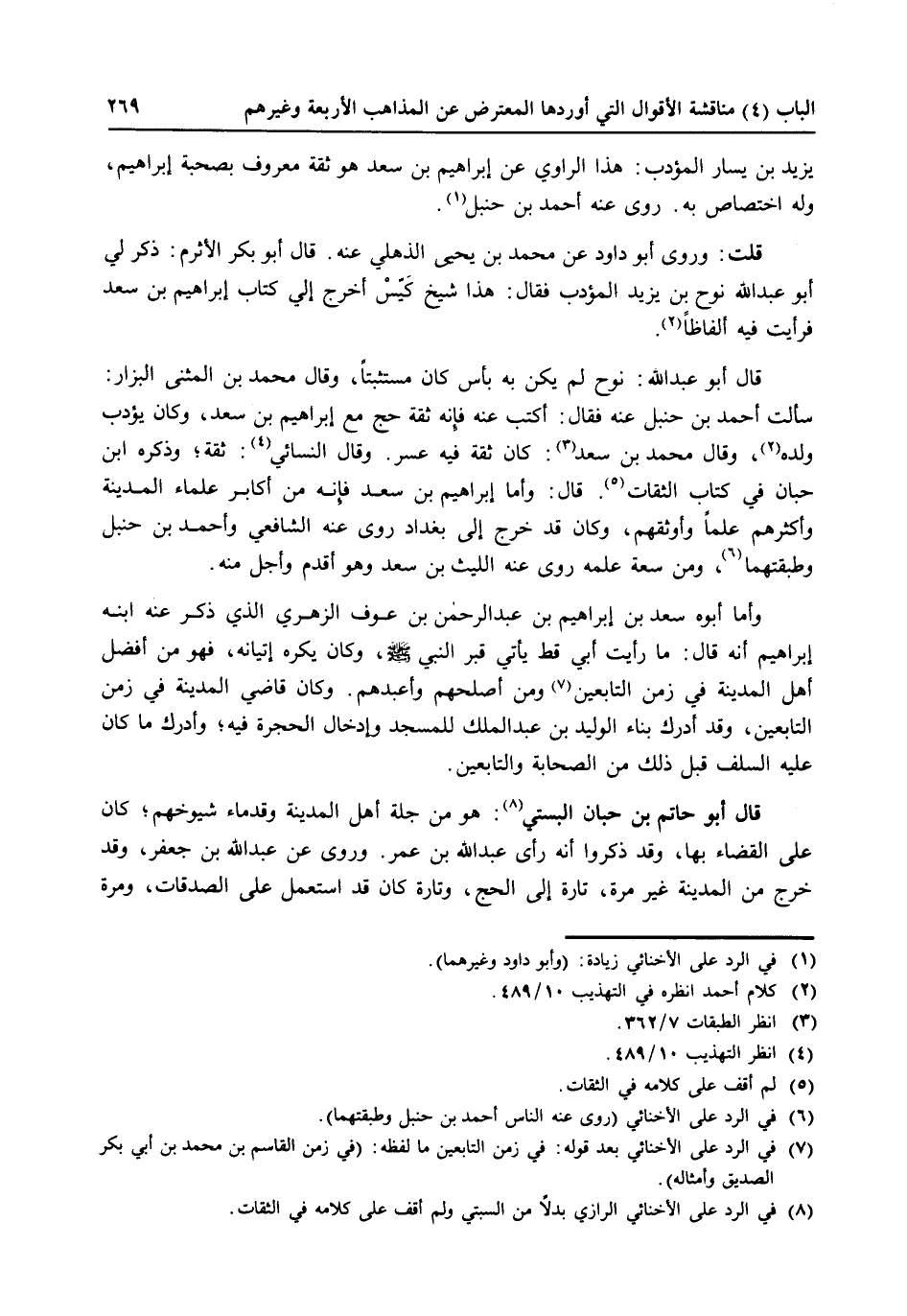 (8) في الرد على الأخنائي الرازي بدلاً من البستي ولم أقف على كلامه في الثقات.