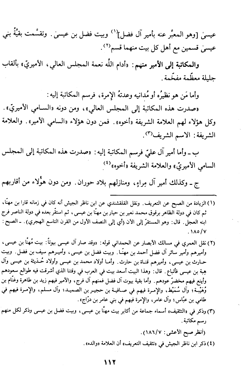 ج - وكذلك أمير آل مراء، ومنازلهم بلاد حوران. ومن دون هؤلاء من أقاربهم