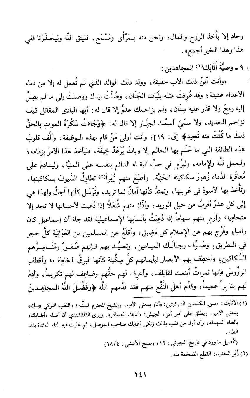 9 - وصية أتابك المجاهدين: