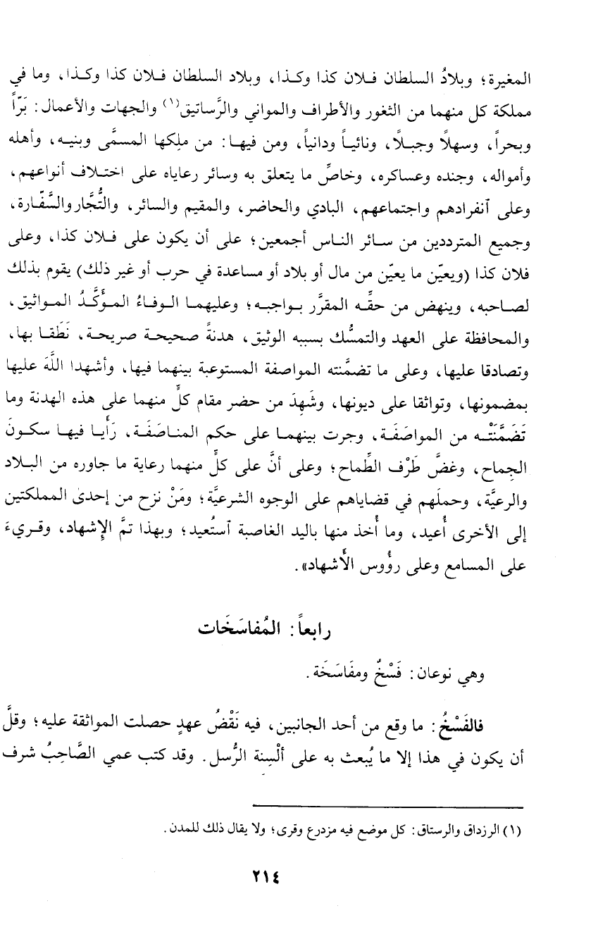 فالفسخ: ما وقع من أحد الجانبين، فيه نقض عهد حصلت المواثقة عليه؛ وقل أن يكون في هذا إلا ما يبعث به على ألسنة الرسل. وقد كتب عمي الصاحب شرف