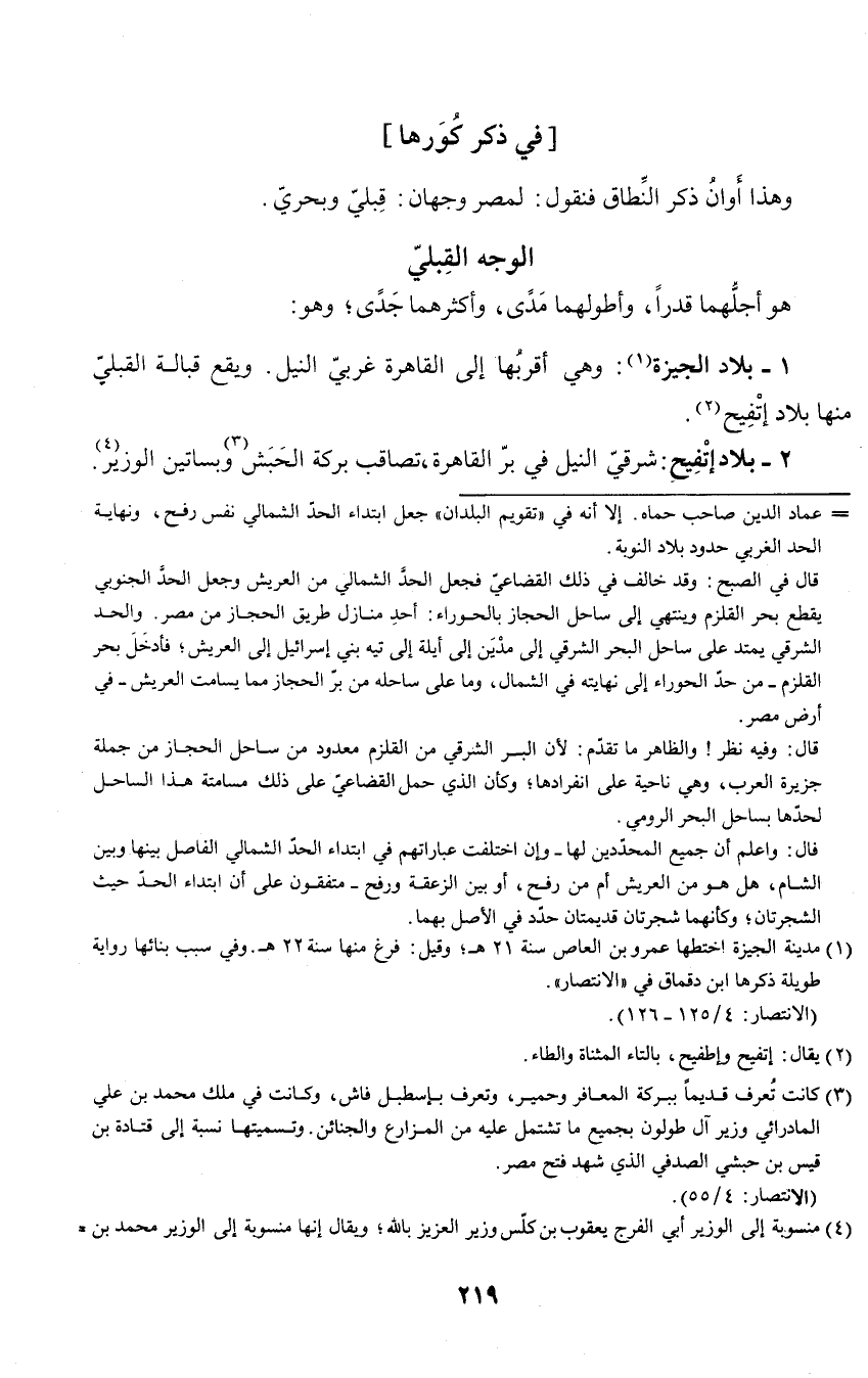 وهذا أوان ذكر النطاق فنقول: لمصر وجهان: قبلي وبحري.