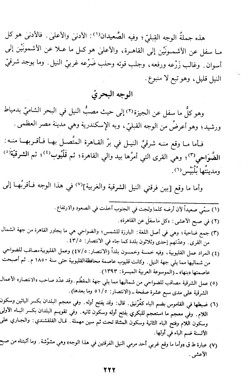هذه جملة الوجه القبلي؛ وفيه الصعيدان: الأدنى والأعلى. فالأدنى هو كل ما سفل عن الأشمونين إلى القاهرة، والأعلى هو كل ما على عن الأشمونين إلى أسوان. وغالب زرعه ورفعه، وجلب قوته ضرعه غربي النيل. وما يوجد شرقي النيل قليل، وهو تبع لا متبوع.