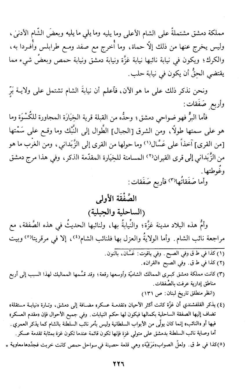 ونحن نذكر ذلك على ما هو الآن، فاعلم أن نيابة الشام تشتمل على ولاية بر وأربع