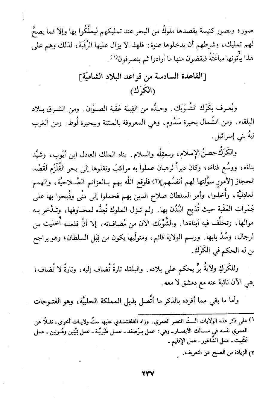 وللكرك ولاية بر يحكم على بلاده. والبلقاء تارة تضاف إليه، وتارة لا تضاف؛ وهي الآن نائبة عنه مع دمشق لا معه.
