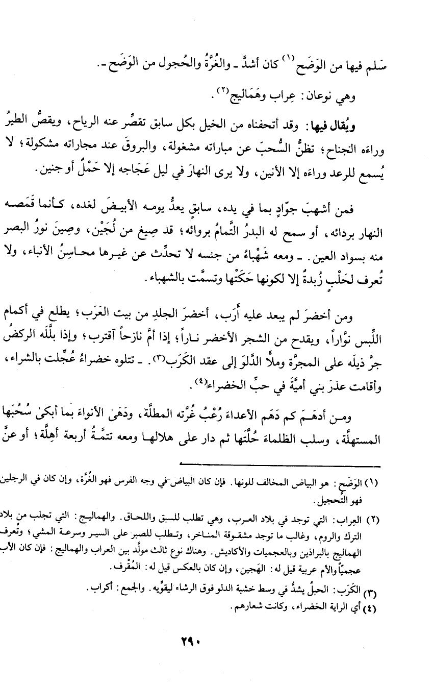 فمن أشهب جواد بما في يده، سابق يعد يومه الأبيض لغده، كأنما قمصه النهار بردائه، أو سمح له البدر التمام بروائه؛ قد صيغ من لجين، وصين نور البصر منه بسواد العين. - ومعه شهباء من جنسه لا تحدث عن غيرها محاسن الأنباء، ولا تعرف لحلب زبدة إلا لكونها حكتها وتسمت بالشهباء.