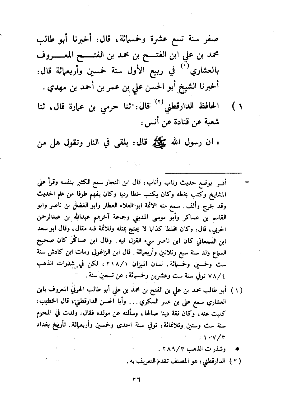 1 الْحَافِظُ الدَّارقطني2 قَالَ: ثَنَا حَرَمِيُّ بْنُ عُمَارَةَ قَالَ، ثَنَا شُعْبَةُ، عَنْ قَتَادَةَ، عَنْ أَنَسٍ: