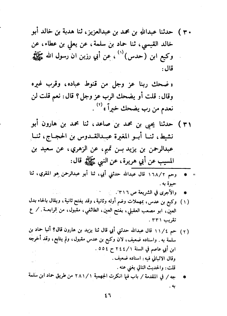أحاديث صفة الضحك والكرسي موضع القدمين