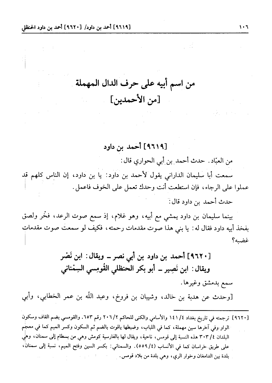 [9620] أحمد بن داود بن أبي نصر- ويقال: ابن نصر ويقال: ابن نصير- أبو بكر الحنظلي القومسي السمناني
