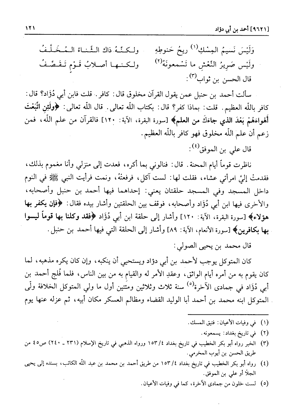[سورة البقرة، الآية: 120] وأشار إلى حلقة ابن أبي دؤاد فَقَدْ وَكَّلْنا بِها قَوْماً لَيْسُوا بِها بِكافِرِينَ