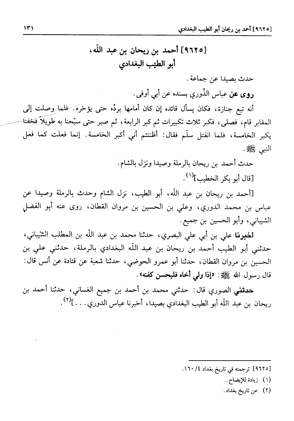 [9625] أحمد بن ريحان بن عبد الله، أبو الطيّب البغدادي