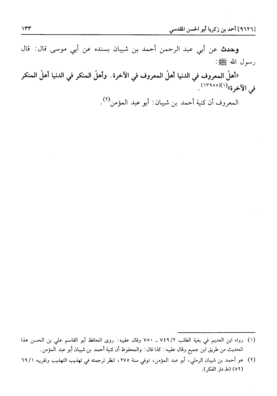المعروف أن كنية أحمد بن شيبان: أبو عبد المؤمن «2» .