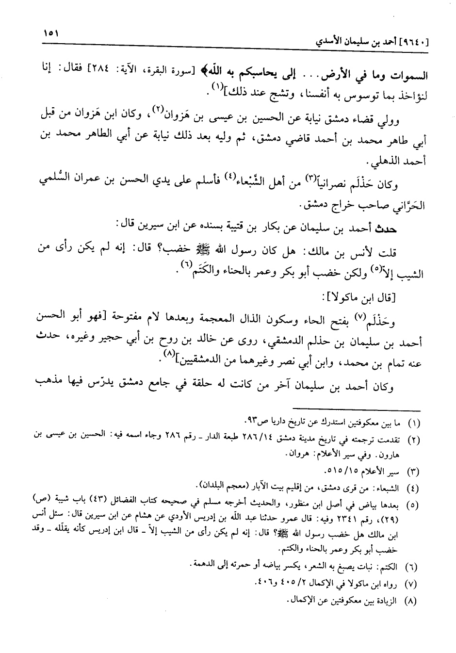 حدث أحمد بن سليمان عن بكار بن قتيبة بسنده عن ابن سيرين قال: