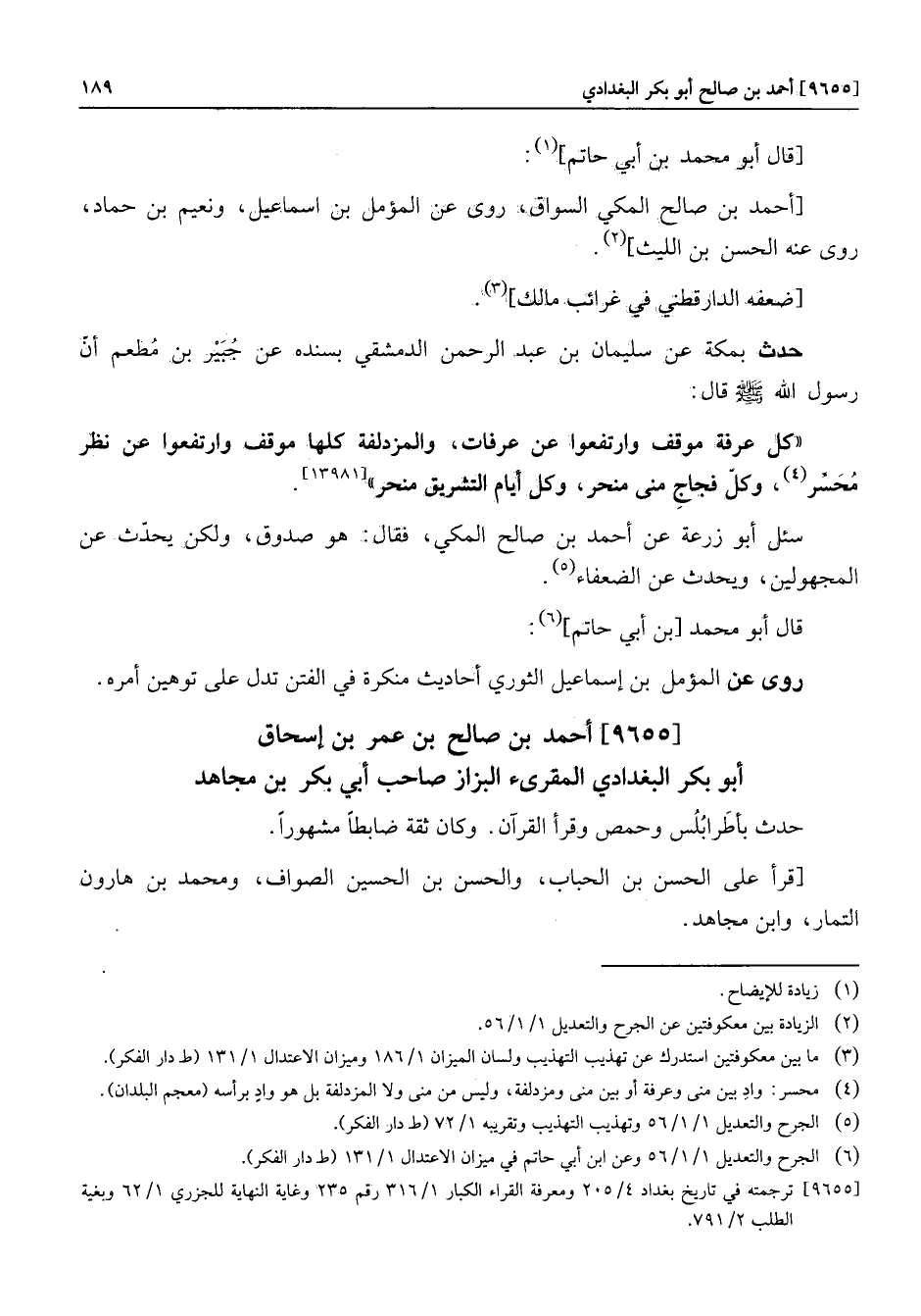 [9655] أحمد بن صالح بن عمر بن إسحاق أبو بكر البغدادي المقرىء البزاز صاحب أبي بكر بن مجاهد