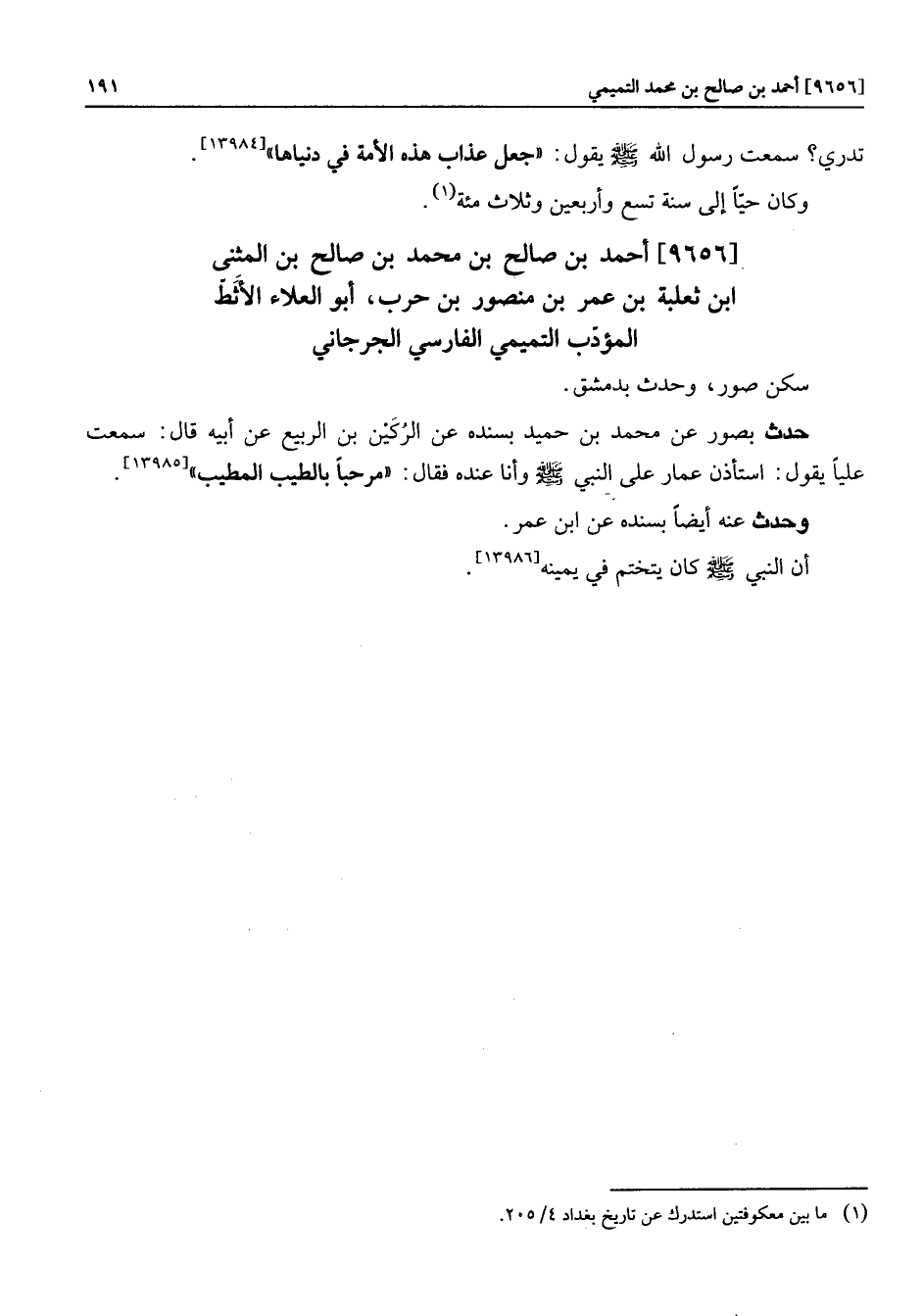 [9656] أحمد بن صالح بن محمد بن صالح بن المثنى ابن ثعلبة بن عمر بن منصور بن حرب، أبو العلاء الأثطّ المؤدّب التميمي الفارسي الجرجاني