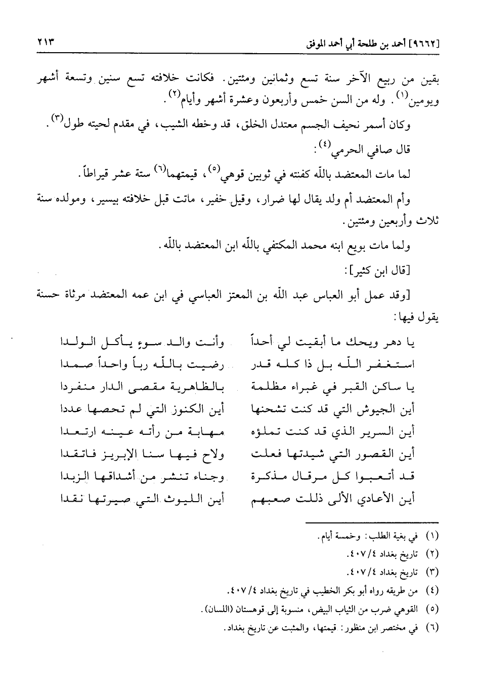لما مات المعتضد بالله كفنته في ثوبين قوهي «5» ، قيمتهما «6» ستة عشر قيراطا.
