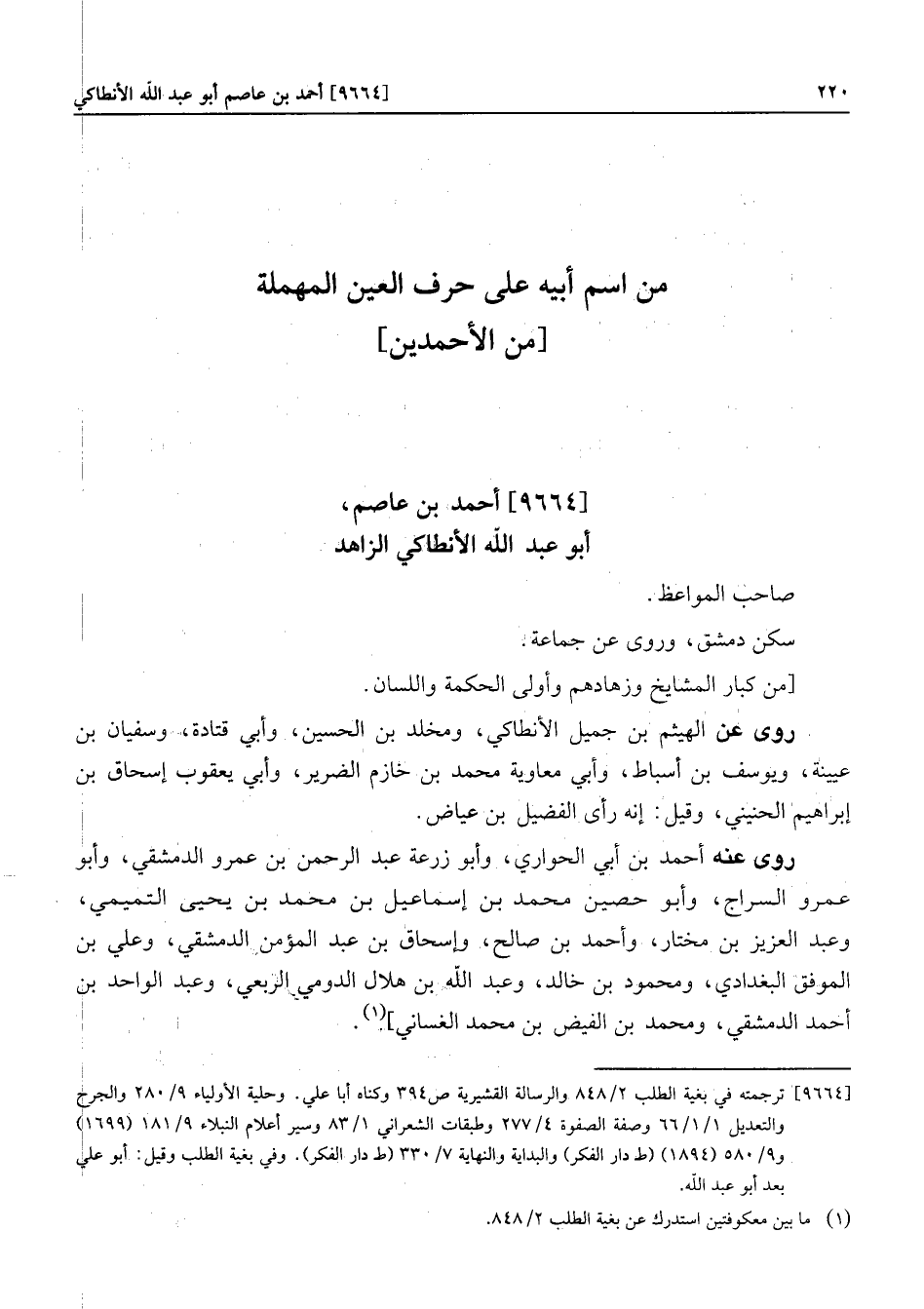 [9664] أحمد بن عاصم، أبو عبد الله الأنطاكي الزاهد