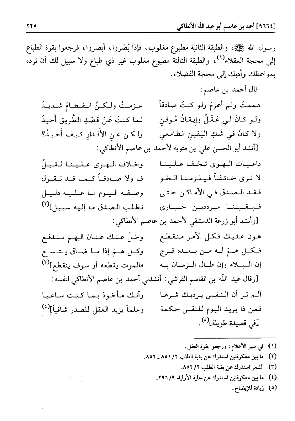 [وأنشد أبو زرعة الدمشقي لأحمد بن عاصم الأنطاكي: