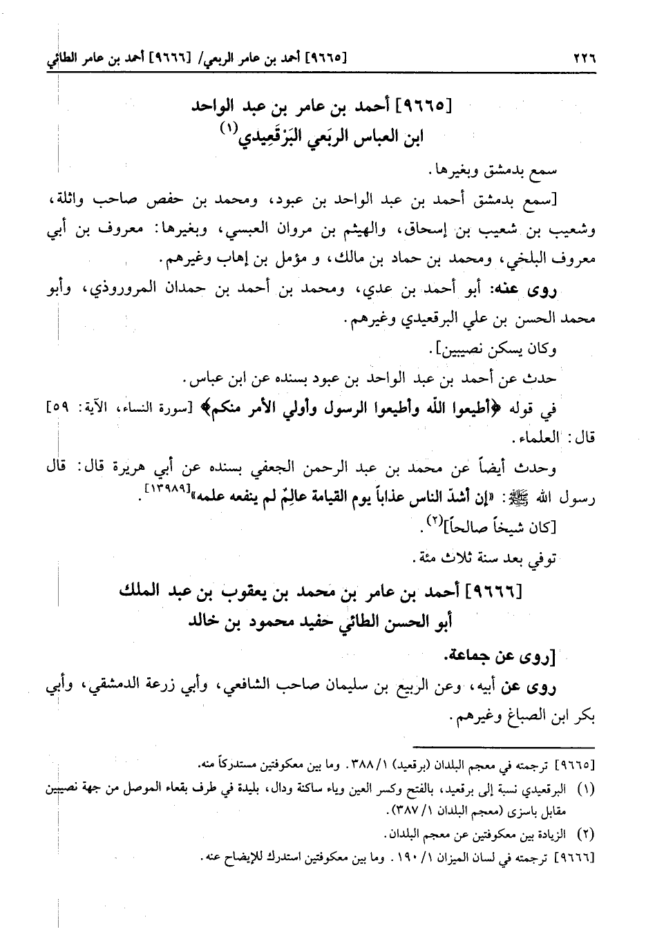 [9665] أحمد بن عامر بن عبد الواحد ابن العباس الربعي البرقعيدي «1»