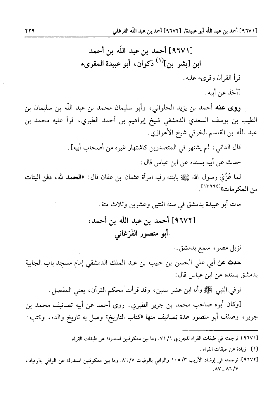 [9671] أحمد بن عبد الله بن أحمد ابن [بشر بن] «1» ذكوان، أبو عبيدة المقرىء