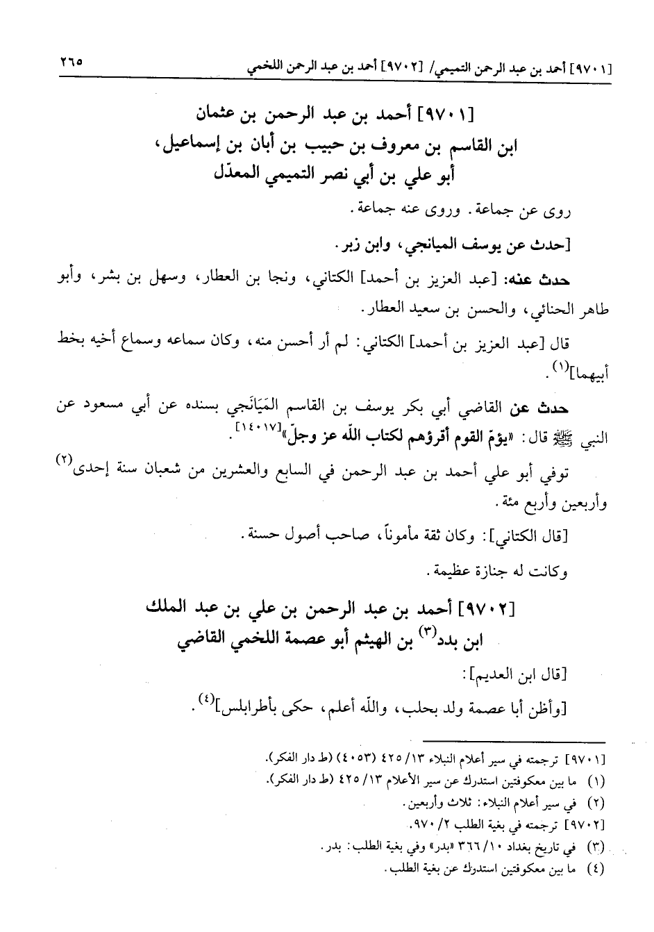 [9701] ترجمته في سير أعلام النبلاء 13/425 (4053) (ط دار الفكر) .