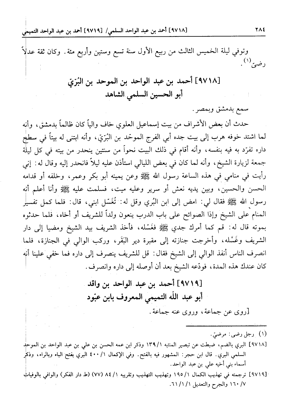 [9719] ترجمته في تهذيب الكمال 1/195 وتهذيب التهذيب وتقريبه 1/84 (77) (ط دار الفكر) والوافي بالوفيات 7/160 والجرح والتعديل 1/1/61.