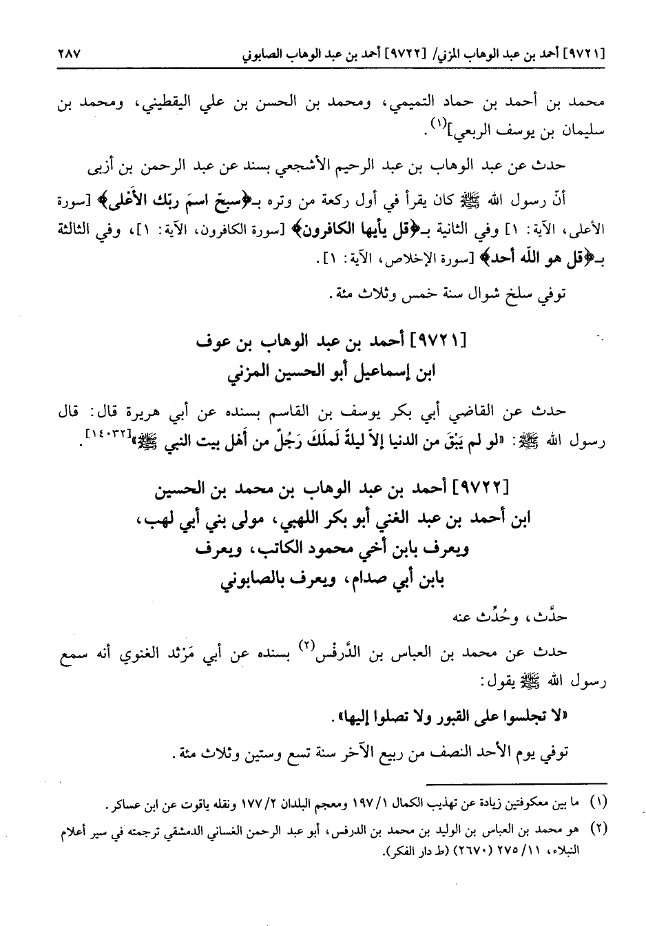 [9722] أحمد بن عبد الوهاب بن محمد بن الحسين ابن أحمد بن عبد الغني أبو بكر اللهبي، مولى بني أبي لهب، ويعرف بابن أخي محمود الكاتب، ويعرف بابن أبي صدام، ويعرف بالصابوني