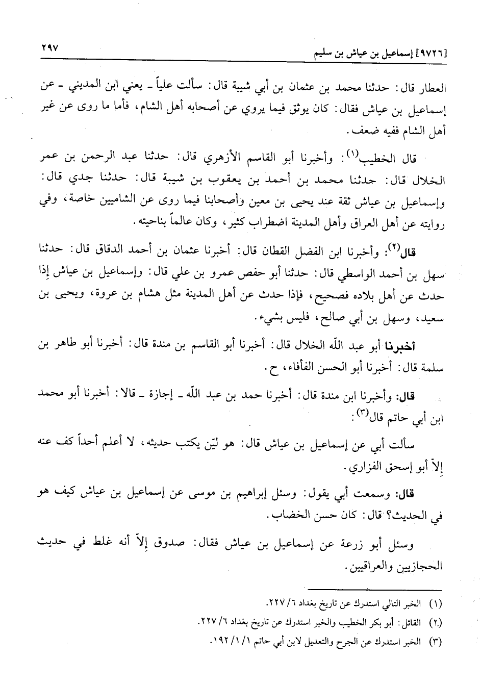 وسئل أبو زرعة عن إسماعيل بن عياش فقال: صدوق إلّا أنه غلط في حديث الحجازيين والعراقيين.
