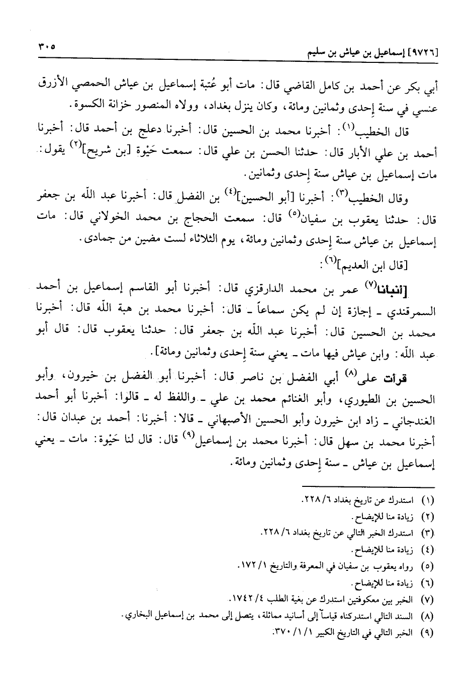 [أنبأنا «7» عمر بن محمد الدارقزي قال: أخبرنا أبو القاسم إسماعيل بن أحمد السمرقندي- إجازة إن لم يكن سماعا- قال: أخبرنا محمد بن هبة الله قال: أخبرنا محمد بن الحسين قال: أخبرنا عبد الله بن جعفر قال: حدثنا يعقوب قال: قال أبو عبد الله: وابن عياش فيها مات- يعني سنة إحدى وثمانين ومائة] .