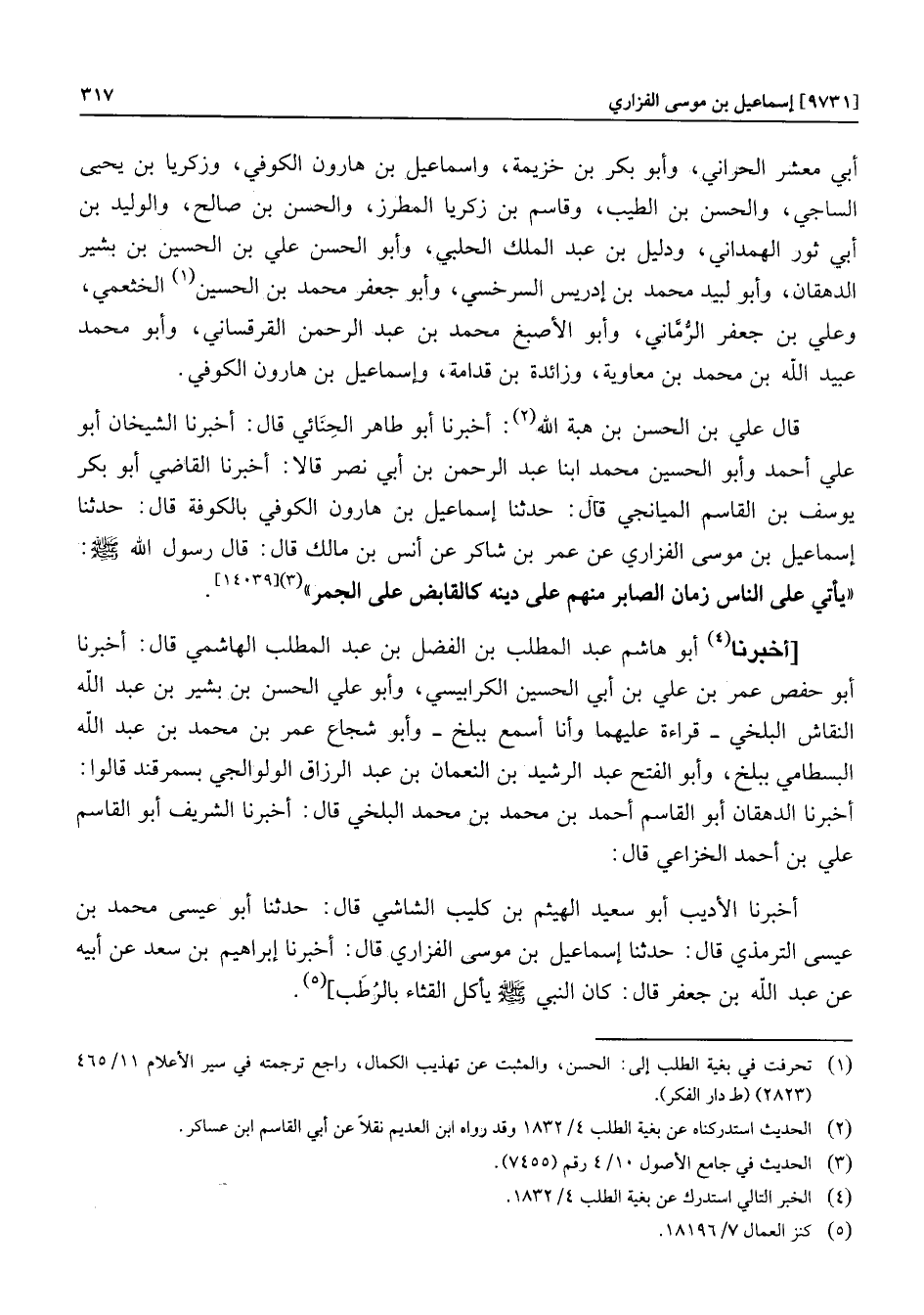 أخبرنا الأديب أبو سعيد الهيثم بن كليب الشاشي قال: حدثنا أبو عيسى محمد بن عيسى الترمذي قال: حدثنا إسماعيل بن موسى الفزاري قال: أخبرنا إبراهيم بن سعد عن أبيه عن عبد الله بن جعفر قال: كان النبي صلى الله عليه وسلم يأكل القثاء بالرطب] «5» .