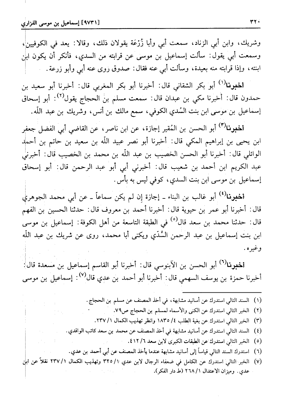 أخبرنا حمزة بن يوسف السهمي قال: أخبرنا أبو أحمد بن عدي قال «7» : إسماعيل بن موسى