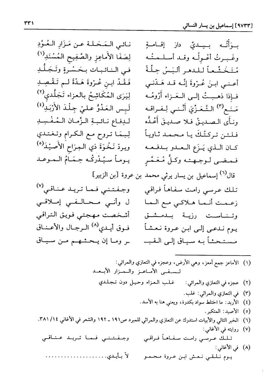 قال «6» إسماعيل بن يسار يرثي محمد بن عروة [بن الزبير]